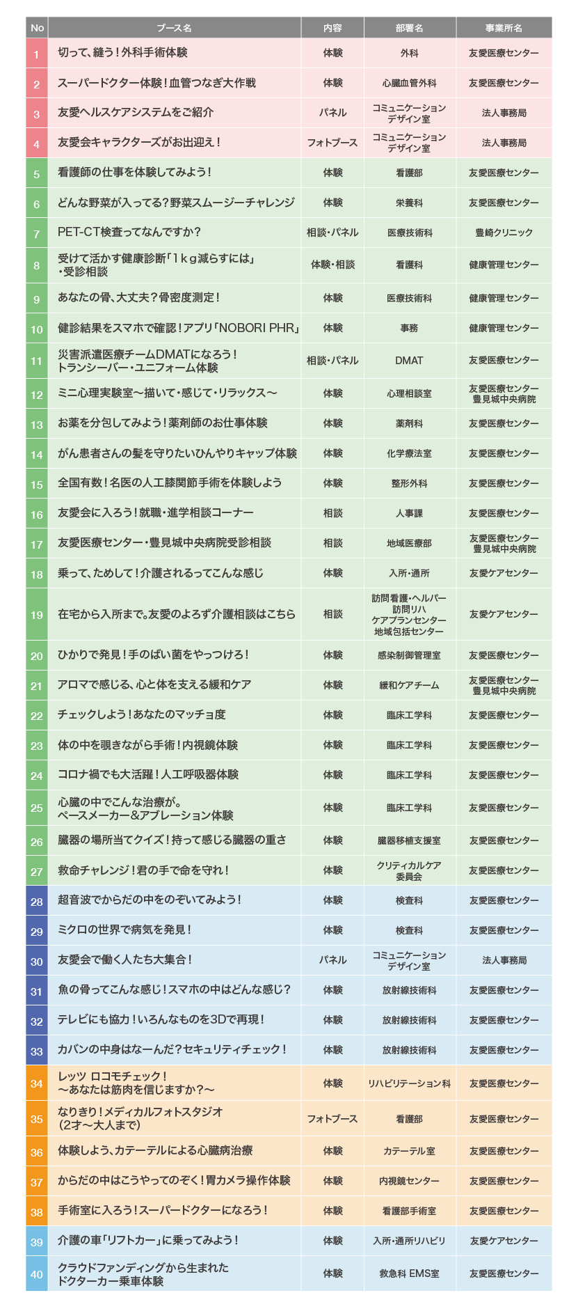 また、豊見城中央病院や健康管理センター、豊崎クリニック、友愛園といった友愛ファミリーが大集合して様々な展示を行います。
