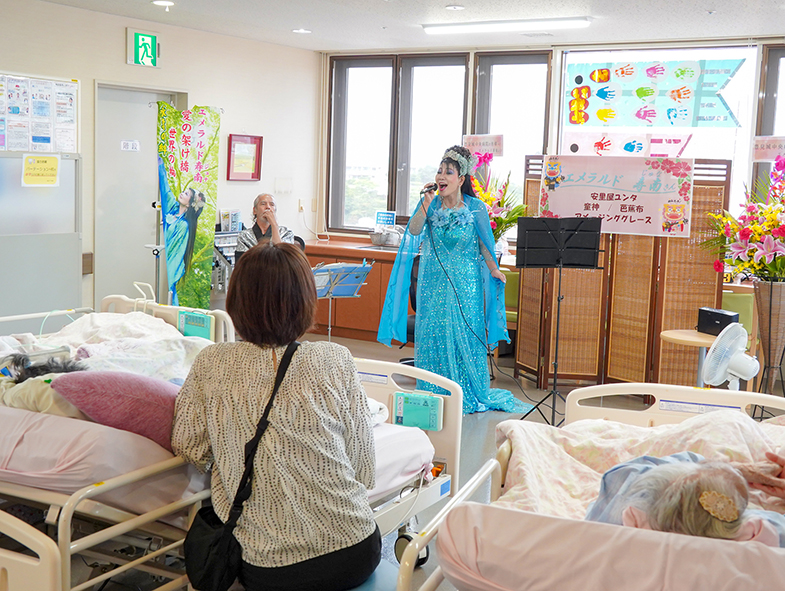 特別ゲストをお招きしたミニコンサートなどを開催。患者さんはもちろんご家族、スタッフも一緒に歌や踊りを楽しみます。