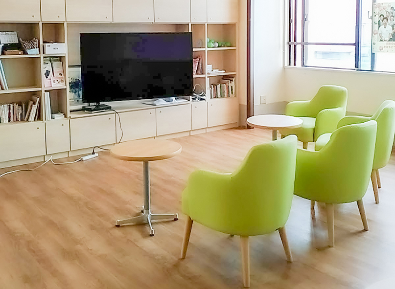 お部屋には、シャワー、トイレ、洗面台、テレビなどが備え付けられており、プライベートに配慮された空間となっております。ご自宅にいるような雰囲気で、患者さんとご家族が入院生活を快適に過せるように配慮しています。その他、共用スペースにデイコーナー、食堂、談話室、家族控室、キッチン、ランドリーがあります。