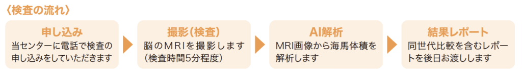 この検査ではAI解析により海馬の健康状態を数値化します。