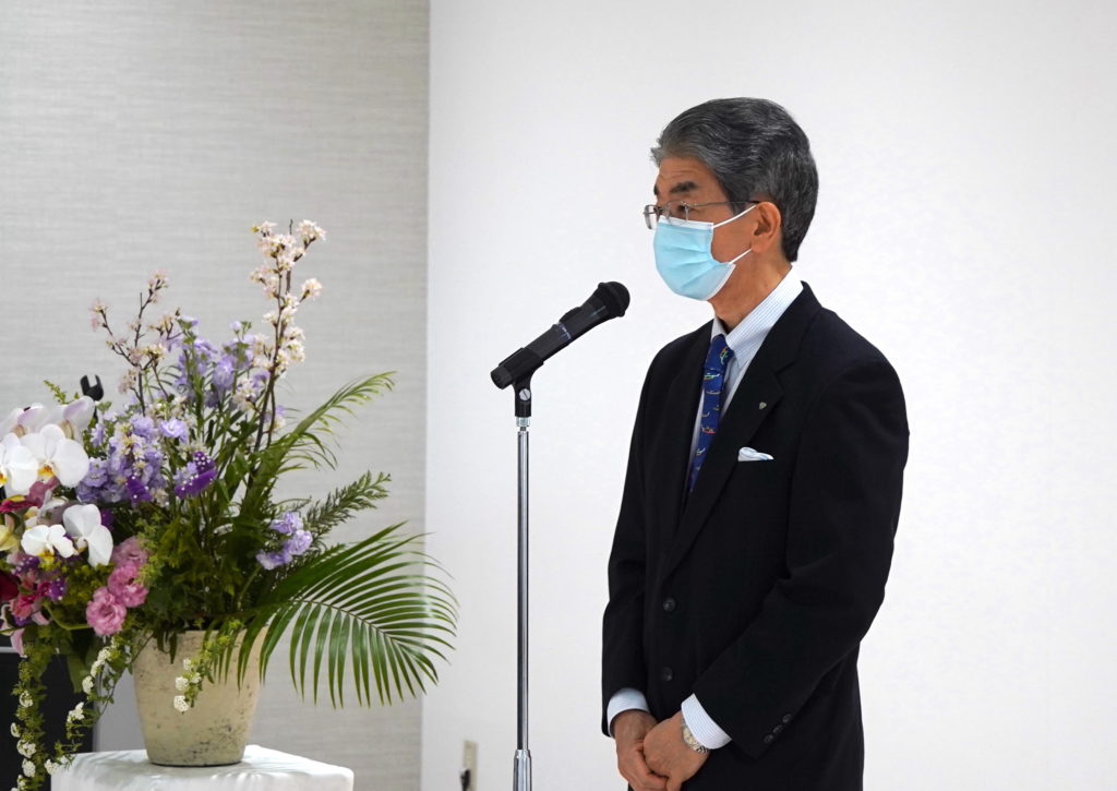 式では、比嘉国基当法人理事長兼友愛医療センター院長と外間力人豊見城中央病院院長が挨拶し、比嘉理事長兼院長からは「友愛医療センターは急性期病院であり、高度な医療においては少しのミスが患者さんの命に関わるため、医療安全が非常に重要です。日頃から何事も再確認するよう心がけてください。また、患者さんを笑顔で帰すことが我々の最終目標です。そのためには職員が笑顔でいないといけない。辛い時や苦しい時は周りに声を掛けて、気負わず一緒に頑張っていきましょう」、外間院長からは「職員が明るく楽しく働くことで患者さんにも良い影響を与えます。また、医療人としての自覚を持ち、自身の健康管理もしっかりと行ってください。皆さんの行動力・柔軟な発想に期待しています」との言葉が贈られました。